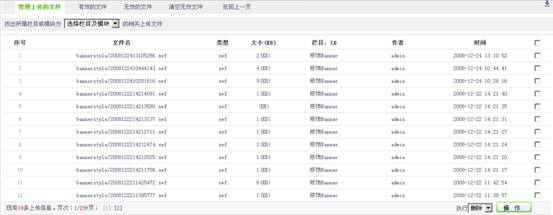• 可以对网站上传的文件进行管理删除等操作,点击(管理上传的文件、 有效的文件、无效的文件、清空无效文件)可以对网站上传文件虑选后进行删除更新等操作。