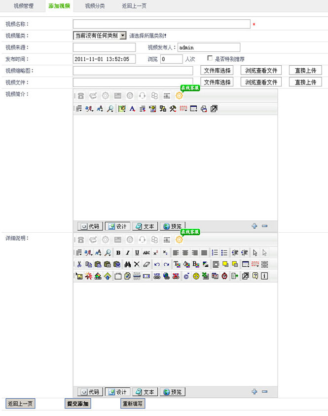 10.在“视频内容”字段,可以在线编辑您视频内容。