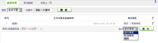 在“在链接列表”,设置链接的SEO配置、修改、是否审核,删除等操作。