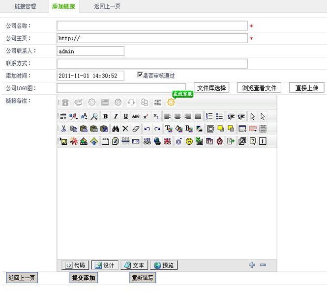 6.在“是否审核通过”字段,设置链接是否审核通过。