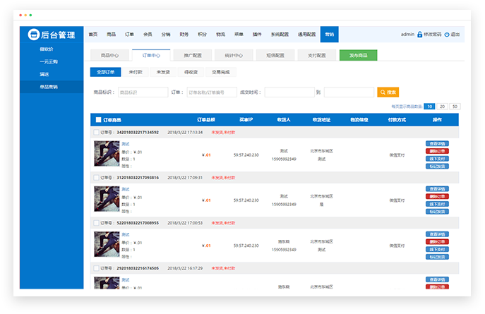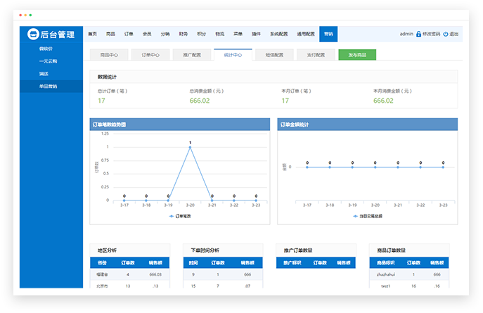 详细的数据统计订单效果,利于分析市场需求, 更好的进行营销推广